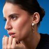 Brinco em ouro amarelo com design circular e acabamento sofisticado. A peça traz uma base em madrepérola que reflete delicadamente a luz, destacando ao centro um detalhe oval cravejado com pequenos diamantes, adicionando brilho e elegância. O contraste entre o dourado, o branco nacarado e o cintilar das pedras cria uma estética refinada e atemporal. Ideal para quem busca um acessório versátil, que une luxo discreto e elegância contemporânea.