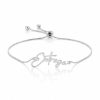Pulseira ajustável (estilo slider) com detalhe central circular em zircônias pretas e baguetes brancas. Proteção elegante e contemporânea.
